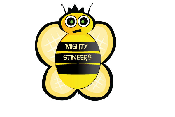 Stingers". Then I came up with "Mighty Stingers". The font is "Hurry Up, and the logo was created using